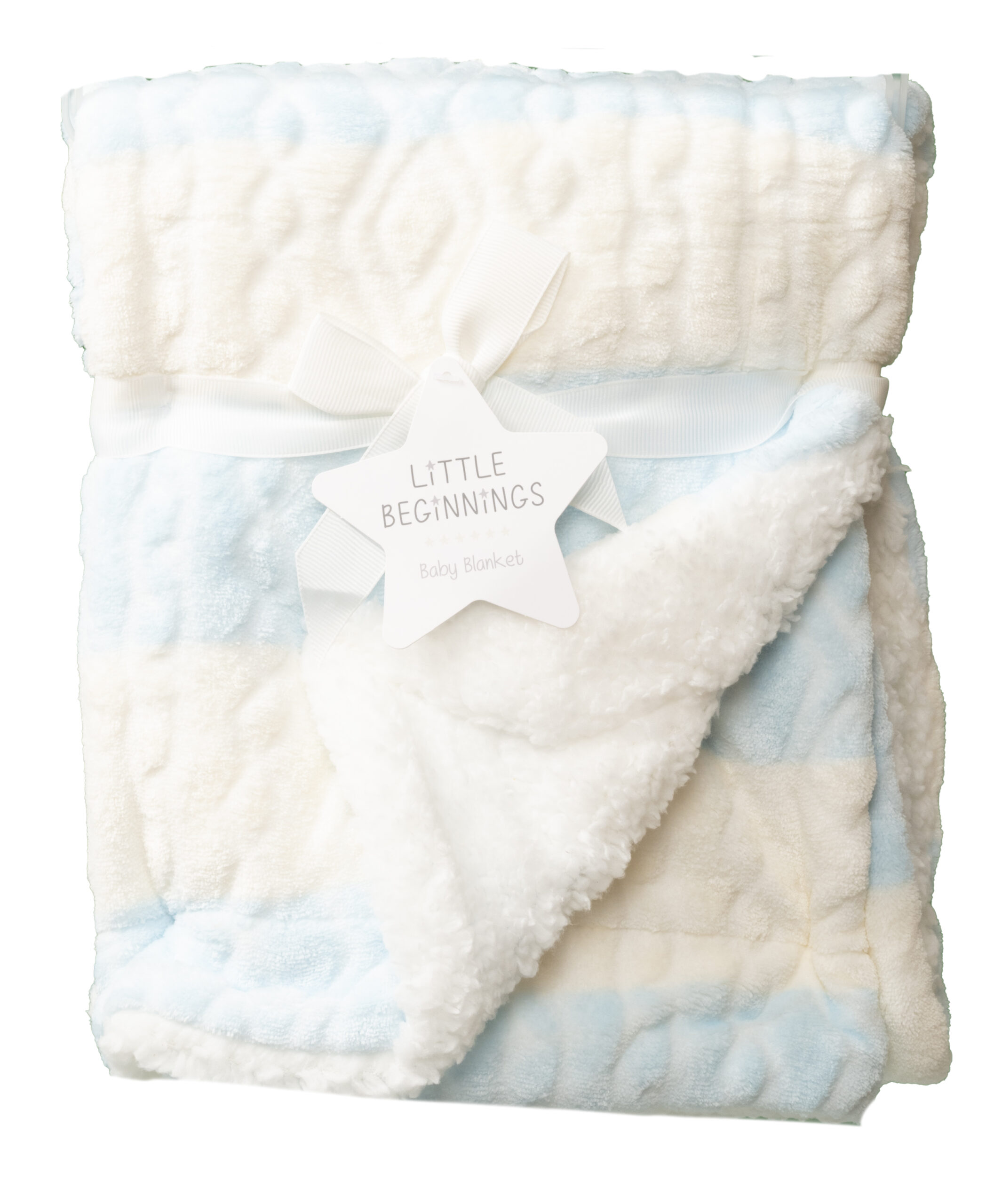 Little Beginnings Baby Boy Blanket – Blue & White with Bow